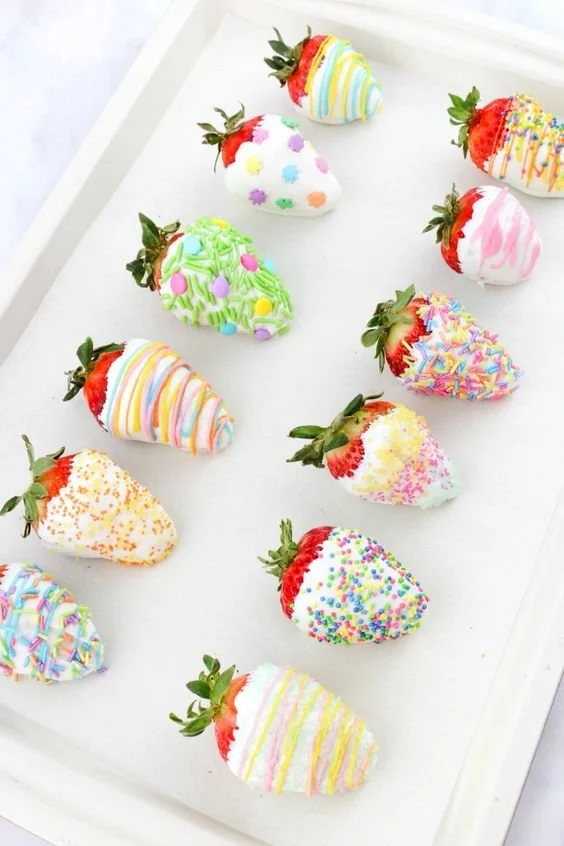 Popcorn, chocolate candies, white chocolate, sprinkles, marshmallows