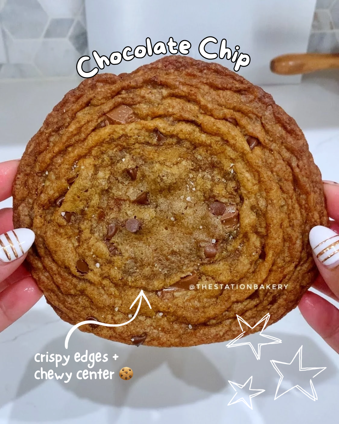 This jumbo chocolate chip cookie is a best-seller for a reason — perfectly crisp on the edges, soft in the middle, and topped with flaky sea salt.